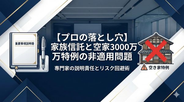- 税務上の注意点: 「本信託不動産は昭和56年以前の建物であり、将来相続が発生した際の『空き家3000万円特例』の適用が、現在の国税庁の見解では認められないリスクがあること」